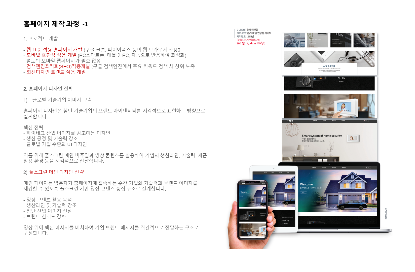 디자인 방향 : 기업의 기술력과 신뢰성을 강조하는 글로벌 기업형 디자인을 적용합니다.